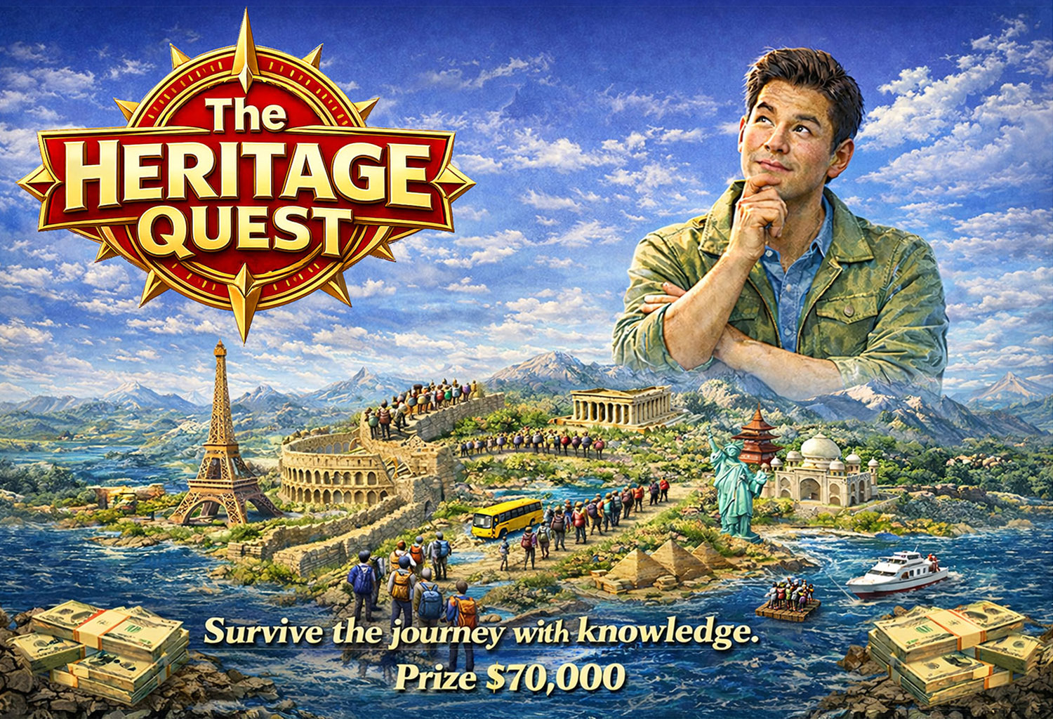 Thirty challengers embark on an epic journey across the country, testing their knowledge at historic landmarks and iconic landscapes. Each correct answer unlocks the next destination, while a single mistake ends the journey on the spot. With every elimination, the prize grows̶driving suspense toward a dramatic final showdown. Combining travel, culture, and high-stakes quiz gameplay, this format delivers a visually stunning and emotionally charged entertainment experience. Release Year